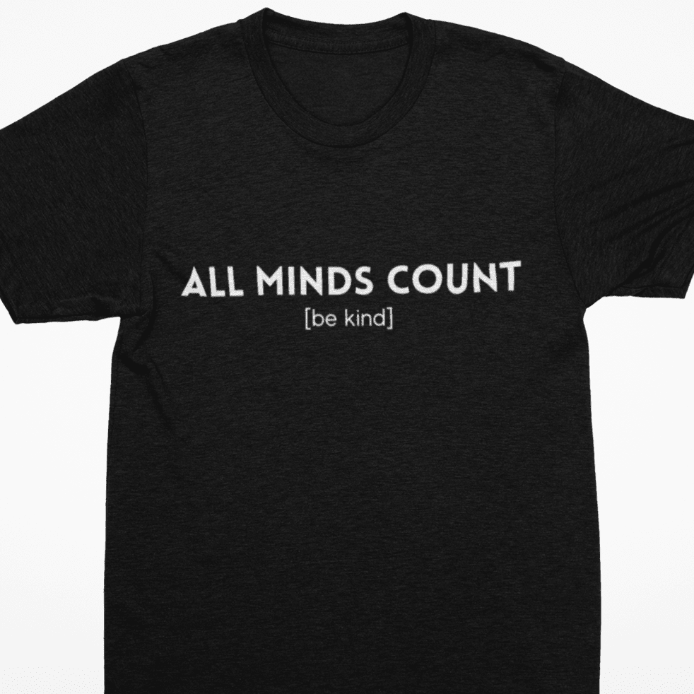 Wear the "All Minds Count" t-shirt with pride. Let it be your megaphone.